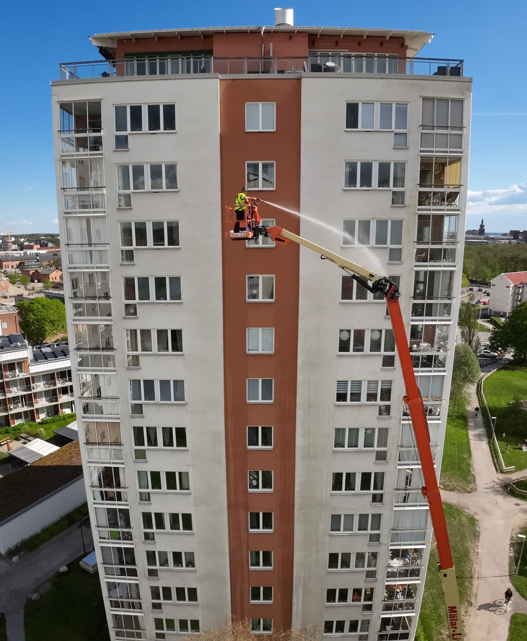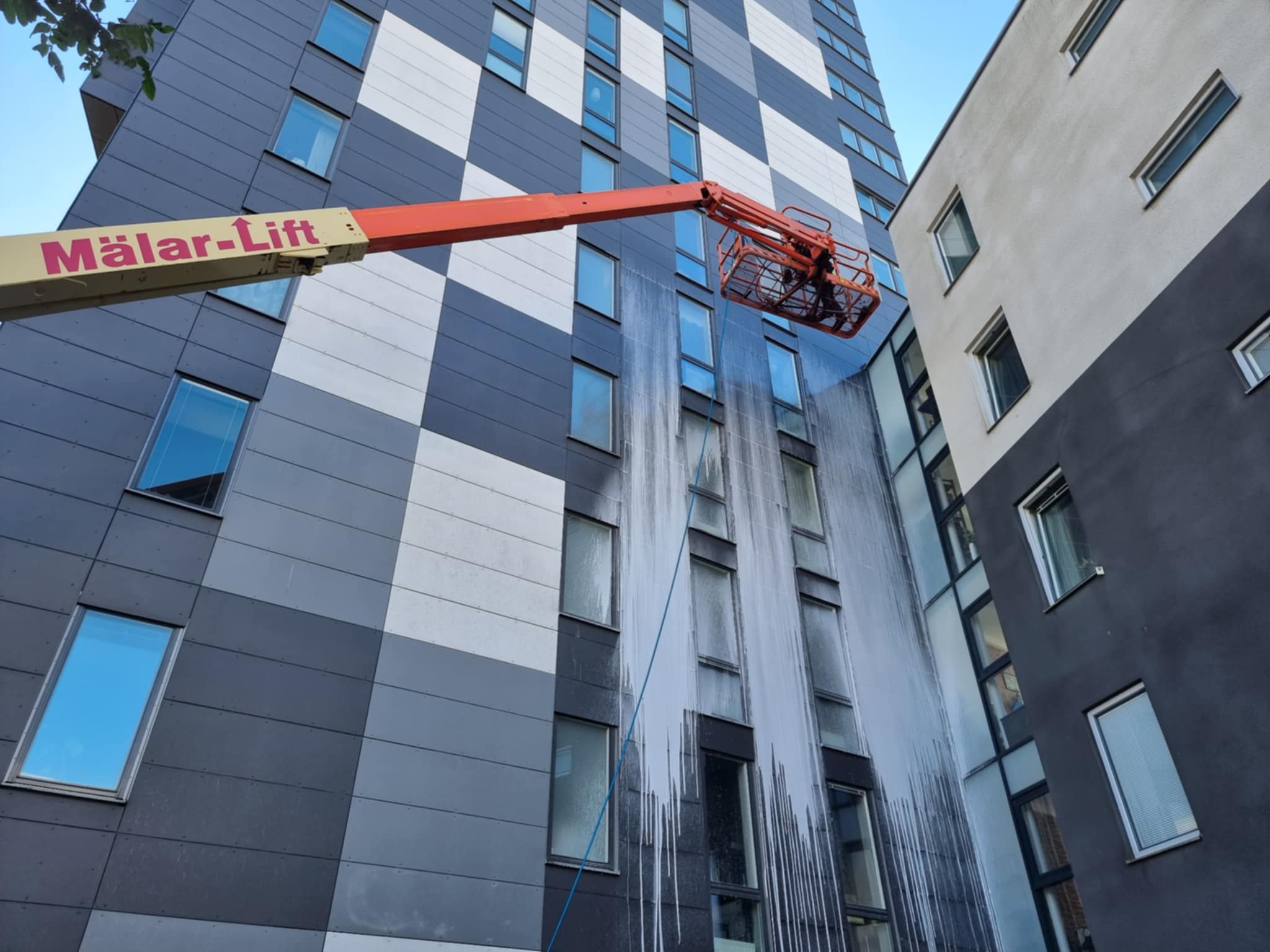 Vi tvättar många fasader åt måleriföretag inför ommålning.